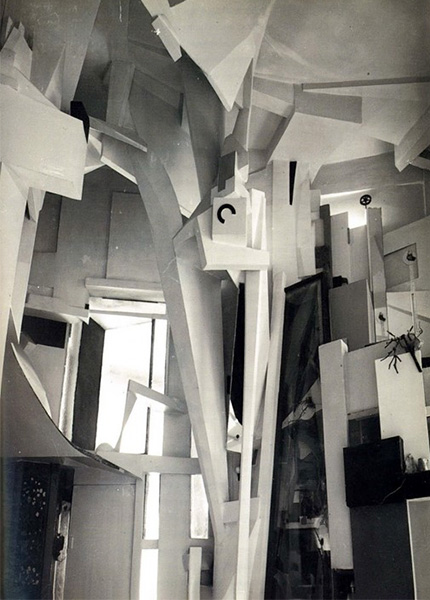 شویتزِر کار خود «merzbau» نامید. "bau" در زبان آلمانی به معنایِ سازه و ساختمان است و برخی تفسیر کرده اند که «merz» در ابتدای این ترکیب از کلمه ای دیگر در زبان آلمانی آمده. کلمه "commerz" به معنایِ تجارت که گویی شویتزِر با بُرش عامدانه این کلمه به شکلی خلاقانه رویکرد این هنرِ تازه از راه رسیده را نشان داد. در میانه جنگ دومِ جهانی با بمباران متفقین بر رویِ هانوفِر این اثر از بین رفت -که به شکلی کِنایی سرشتِ موقتی و گذرایِ این سنخ آثار به شیوه ای رادیکال آشکارِگی گرفت- اما چند سال پس از پایانِ جنگ هنرمندی ایتالیایی-آرژانتینی به نام لوچیو فونتانا شبیه شویتزِر شیوه تعامل مخاطب با هنر را تبدیل به مساله کرد. او در اثر مشهورش به نام "Ambienti Spaziali" با نِئون هایِ نورانیِ به هم آمیخته بَر فرازِ سَر، مشاهده گر را به تجربه فَضا فرا می خواند. فضا به عنوان یک کُلّیت، نه آبژه ای بسته مانند قابِ نقاشی که شیوه هایِ تعامل با آن توسط خودِ مدیوم تعیّن یافته است. مثلاً در مدیوم نقاشی مخاطب به گالری می آمد و روبرویِ قابِ آویخته می ایستاد و به نقاشی نگاه می کرد. این فُرمِ ایستایِ تجربه نقاشی حاصلِ خلاقیت مخاطب در برخورد با اثر هنری نبود بلکه سنتِ تحلیلِ هنر با تمامی گرانباریِ خود، مخاطب را در چنین وضعیتِ منفعلانه ای تثبیت می کرد. مشاهده گر نمی توانست از زاویه های نوتَری به نقاشی نگاه کند -مثلا در حال راه رفتن یا نشسته- چون شیوه تفسیر و نقد از پیش تَعَیُّن پیدا کرده بود و مخاطب تنها از میان تفاسیری که مولف گُزیده، دست به انتخاب می زد. مخاطب نمی توانست اثر را بو کند، حتی اگر بو می کرد تفسیرِ او بر اساسِ بو جایی در میانِ تفسیر هایِ جریانِ غالب پیدا نمی کرد؛ زیرا اولویت با کلیشه های نقدِ قدیم بود که با ارجاع به ذهن و زندگیِ مولف اثر را تفسیر می کردند و مشارکت و خلاقیت و رأیِ مخاطب در درجه چندمِ توجه بود. فونتانا در زمینه سیاهِ چشمگیرِ یک اتاق، حجم های پیچیده ای با رنگ هایِ آبی روشن و سبزِ چمنی و بنفش را بر فرازِ اتاق می چیند و مخاطب می تواند با تغییر مکان و استفاده از دیگر قوه های حسّی مواجهه ای خلاقانه با اثر صورتبندی کند و از مشاهده گری منفعل به مشارکت کننده ای فعال تبدیل شود.