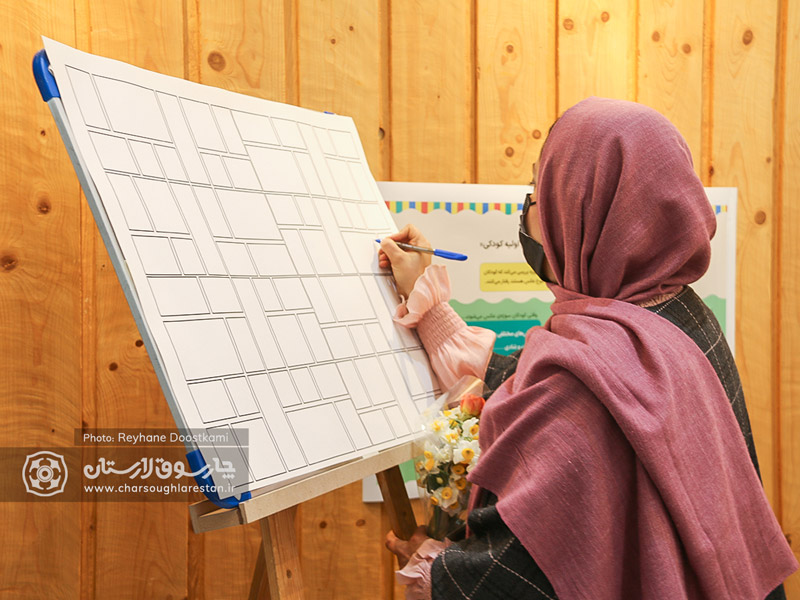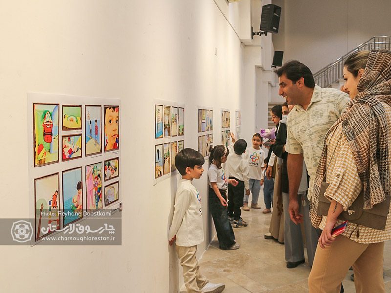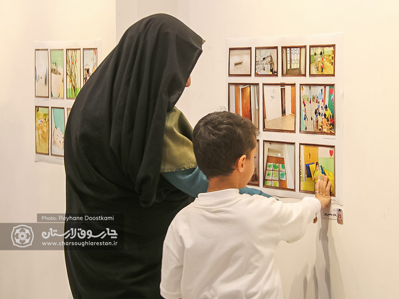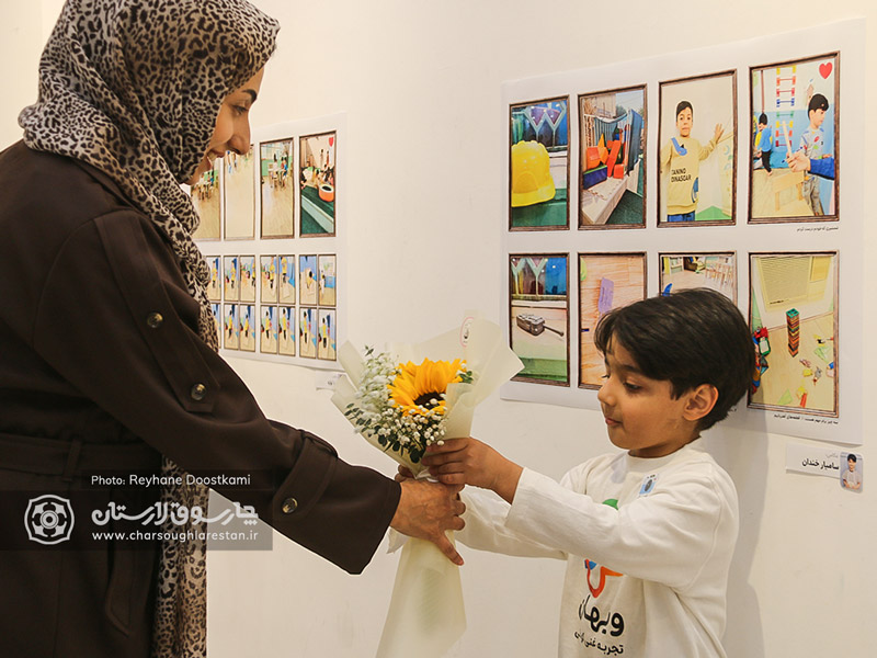 از ویژگی های جذاب این نمایشگاه، توجه ویژه به تجربه های کودکان بود که به عنوان خالق اثر با لباس ویژه و اتیکت (برچسب نام) در فضای نمایشگاه حضور داشتند و آثار نیز هم تراز با زاویه دید کودکان در ارتفاع پایین روی دیوار نگارخانه نصب شده بود.